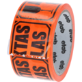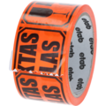 Fluorescent orange tape with a symbol and text in black print reading "Aktas Glas" (eng. "Beware glass"). Tape for packaging with delicate contents such as glass. The warning symbol should convey the contents of the package and ensure safe transport.
