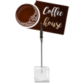 Stående Skyltklämma på fot i akryl från Securit. Idealisk till att används för att hålla upp små skyltar eller griffelskyltar. Passar utmärkt till delikatessen eller till cafét.
