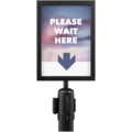 Kromad A4 skylt i svart från Securit. Skylten är infällbar och designad för att visa information eller vägleda era besökare. Sätt in affischen och fäst skylten på toppen av den infällbara barriärstången.