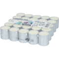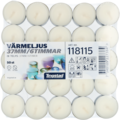 Tea lights with a burn time of approximately 6 hours. Made from vegetable wax and paraffin.