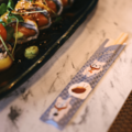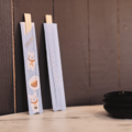Bamboo chopsticks for children, 180 mm, are made of bamboo and suitable for Asian dishes. They come in a paper cover designed by Ellie, 12 years old.