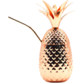 Metal drinking glass shaped like a pineapple. Copper-colored plating; hand wash recommended to maintain the finish. Metal straw included.