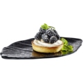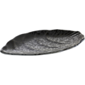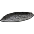 Fat i form av ett löv ur serien Glamour från APS. Fatet är tillverkad av melamin och har en matt, svart färg med svarta, glansiga fläckar som ger dukningen en glamorös touch. Serveringsfatet är stalpelbart.