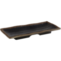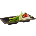 Rektangulärt fat ur serien Marone från APS. Tillverkad i melamin och har en svart färg med brun kant som serverar rätterna på ett mycket stilfullt vis. Passar utmärkt till servering av tillbehören eller annat gott!!