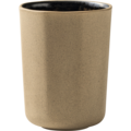 Modern mug with a black interior and beige exterior from the Terra Nova Sombra series by Fortessa. The mug is made of stoneware with an irregular shape that offers a unique table setting in restaurants and private homes.