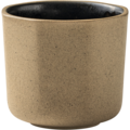 Modern espresso cup with a black interior and beige exterior from the Terra Nova Sombra series by Fortessa. The cup is made of stoneware with an irregular shape that offers a unique table setting in restaurants and private homes.