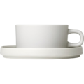 Set of two tea cups and saucers, made of glazed ceramic in the color Moonbeam. Blomus new collection PILAR invites you to the perfect meal with its trendy colors and solid, timeless materials. The designer behind the PILAR collection is Nina Thöming from Flöz Design. The PILAR dinnerware consists of all the essential parts that a dinner service should include and is available in a number of nature-inspired colors. The PILAR tea cup and saucer can be washed in the dishwasher and used in the microwave.