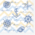En frisk fläkt blåser med denna servett från Manks. Inrett i havets och strandens färger och med klassiska maritima inslag är detta motiv en idealisk kampanjon för rätter från havet och vattnet.