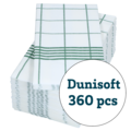 Pre-folded Dunisoft® napkins from Duni with a green towel pattern can be used excellently for lunch, dinner, and other meals. The napkins are made of certified raw materials.