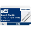 White 1-ply paper napkins from Tork. A simple lunch napkin suitable for lunch restaurants and service environments with high traffic and significant napkin usage. Environmentally certified with the EU Ecolabel.