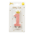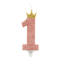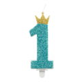 Perfekt till 1 års kalaset. Tårtljus med siffran 1 i glittrig färg. Passar bra dekorera tårtan inför kalaset. Finns i flera andra färger.