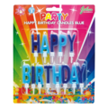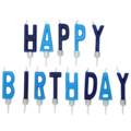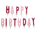 Tårtljus bokstäver: "Happy birthday". Finns i rosa och blå. Fint att dekorera tårtan med.