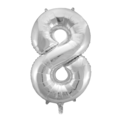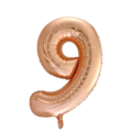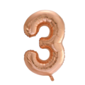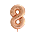Balloon made of foil. Can be filled with either air or helium. Available in numbers 0-9 and in the colors gold, rose, and silver.