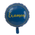 Round blue foil balloon with the text: graduation. Can be filled with air or helium. If you fill it with air, it is easiest to use a manual or electric balloon pump, as the self-sealing valve is located a couple of centimeters in.