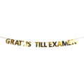 En fin banderoll i guld med text "Grattis till examen". Dekorera examensfesten och häng upp på väggen eller i taket.