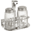 Salt & pepper set from BBM. The complete set in stainless steel includes salt and pepper shakers in glass with a stainless steel lid. The lids have clearly marked holes for salt and pepper. This durable and stylish set is perfect for various environments and is designed for professional serving.