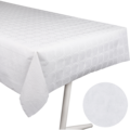 White paper tablecloth on a roll with a damask pattern. Practical tablecloths that can be cut to the desired size. Perfect for catering, events, and much more.