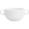 Stapelbat soppkopp med två öron i vit färg ur serien Amanda från Fortessa. Koppen är tillverkad av högkvalitativt porslin med enkel och vacker design som passar att användas dagligen på en restaurang.