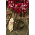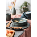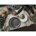 Tallrik ur serien Northern Green från Raw. En del av den handgjorda stengodsserien Northern Green där varje del är unik. En rustik design dekorerad med en skimrande struktur som lyfter den skandinaviska dukningen.