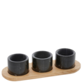 Vacker träbricka med 3 skålar ur serien Style light från WMF. Brickan är tillverkad av askträd och de svarta skålarna är gjorda av marmor. Setet passar bra att användas till att servera såser och dipper på en restaurang.