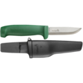 A powerful and durable sharpened knife designed for heavy-duty tasks such as prying, breaking, and chopping. The unique feature of attaching the sheath around the button on work clothing ensures it does not come loose while still being easy to remove. The blade is made of Japanese knife steel, 3 mm carbon steel that has been hardened to 58–60 HRC.