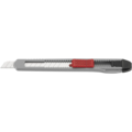 Plastic snap-off blade knife, with 9 mm blade width and pocket clip.