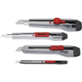 4 piece knife set containing 2 different 9 mm snap-off blade knives and 2 different 18 mm snap-off blade knives.
