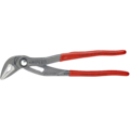 Polygrip pliers Cobra 87 51 250SB from Knipex. The pliers have longer and narrower jaws with 15 quick adjustment positions. The jaws are serrated with a 30 mm pipe grip. The pliers are self-locking, equipped with pinch protection, and have plastic-coated