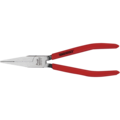 Chrome molybdenum steel. Single joint. Polished head. Long, straight jaws. Serrated grip surface. Rubber dipped handles. DIN 5745.