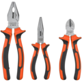 Pliers set with three common pliers: universal pliers, snipe nose pliers, side cutters.