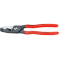 For copper and aluminium cables. One-hand function with pinch guard. Cuts without deforming the cable. Not for steel wire. Black enamel head. Screw joint with option for after adjustment. Plastic covered handles.
