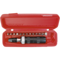 15-piece impact screwdriver set from Teng Tools. Reversible left and right. The screwdriver is designed for a 1/2" square drive but also features a chuck that can accommodate bits with a 5/16" hex shank. Includes a 5/16-3/8 adapter, a 1/2"-5/16" adapter,