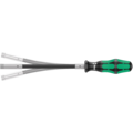 Screwdriver with bendable shaft to reach hard-to-reach areas. Thanks to the construction with a particularly slim bit holder, different screw profiles can be operated, even in very narrow work spaces. Multi-component Kraftform handle for high work speed and especially ergonomic screwdriving. With hexagon anti-roll protection to avoid rolling away.