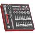 Hylsnyckelsats 3/8 Eva Ted 3836 från Teng Tools. Nyckelsatsen innehåller 36 delar. Levereras i inbyggnadslåda av plast med avtagbart lock. Verktygen ligger i EVA-skum i tre olikfärgade lager. Lådorna passar i Teng Tools verktygslådor och vagnar.