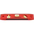 A shock-resistant level in red ABS plastic, with magnets on the underside. Unbreakable vial levels with very high transparency and durability.