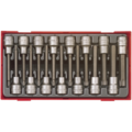 Hylsbitssats Långa 1/2 15 Del från Teng Tools. Hylsbitssatsen består av 15st 100mm långa hylsbits. 9st är för invändiga TX-spår och 6st för invändiga sexkanthål. Samtliga har 1/2" fyrkantsfäste. Mattförkromade.