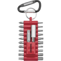 Bit set with 22 pieces. Containing a magnetic bit holder 50 mm, hex adapter 1/4'–1/4' and the 20 most common bits. All bits are 30 mm long with 1/4' hexagonal drive. Supplied in a plastic bit mat with snap hook.