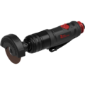 Cut-off tool with 75 mm cutting disc. The head can be angled at 25° in two settings, making hard-to-reach spaces more accessible and allowing work with greater precision. The direction of rotation can be changed to direct sparks away from the operator. The safety guard is easily adjustable and the sound attenuated exhaust is directed backwards. Perfect for the precise cutting of e.g. steel metal, bodywork parts and exhaust pipes.
