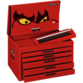 Made of red painted sheet steel. Equipped with 5 extra deep, bearing mounted drawers. Each drawer holds 4 TT and 1 TTX inserts. Lockable lid (incl. top drawer in plastic with aluminium handle) and drawers. Equipped with combination lock. Heavy-duty carrying handles on the ends. Rubber feet under the box. Draw size (2 pcs) 576x410x48.5 mm. Draw size (3 pcs) 576x410x75 mm.