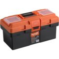 Verktygslåda i robust plast och med kraftiga spännen. Med smidigt uttagbart fack och sortimentsaks i locket så kan man få en bra och tydlig överblick av verktygen man har med sig.