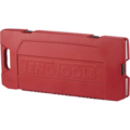 Empty red plastic box which holds 4 TT insert trays size 265x142x50 mm. Or 2 pcs TED insert trays size 265x285x50 mm. Click locking. With handles and carry straps.