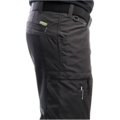 Stretch panel in the crotch, at the knees and seat. Pre-bent legs. Fly with plastic zipper. D-ring in the waistband. Pockets at the back. Leg pockets with pleats, zipper, pen pocket, and knife pocket. Internal phone pocket.