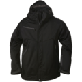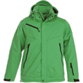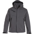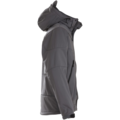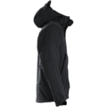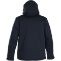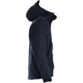 Padded soft shell with detachable hood, pre-curved sleeves, drawstring at bottom hem and Velcro adjustment at bottom sleeves. Front pockets and chest pocket with zippers, 2 inner pockets with zippers and one mesh pocket.