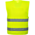 Simple and affordable vest. Velcro closure. Lightweight and comfortable. Reflective tape for increased visibility. Generous fit for user comfort.