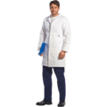 For engineering or lab work. The back has a slit at the bottom for comfort. Two lower pockets and one chest pocket.