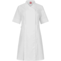 Unik dubbelknäppt kockklänning med stretchpaneler i rygg och sidor för bekväm passform.