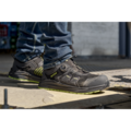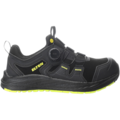 Shoe from leather or other materials excluding all-polymeric material, closed seat region, toe protection tested with 200J impact and 15kN compression force, oil resistant outsole, electrical resistance, energy absorption, water repellent, non-metallic mi