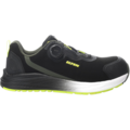 Shoe from leather or other materials excluding all-polymeric material, closed seat region, toe protection tested with 200J impact and 15kN compression force, oil resistant outsole, electrical resistance, energy absorption, water repellent, non-metallic mi