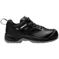 Shoe from leather or other materials excluding all-polymeric material, closed seat region, toe protection tested with 200J impact and 15kN compression force, oil resistant outsole, electrical resistance, energy absorption, steel midsole.