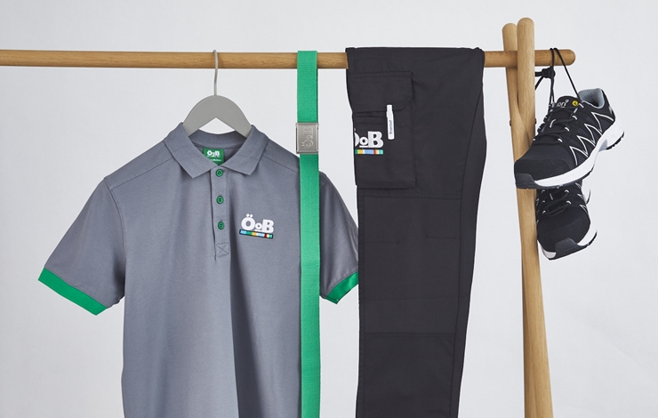 ÖoB has a clear graphic profile and this should also be seen on their clothes. With a green sash, green buttons on the pique and a green zipper on the shirt, the clothes are imbued with ÖoB’s signature color down to the last detail. And the logo is visible on all items of clothing to create connections with the details and showcase the brand.